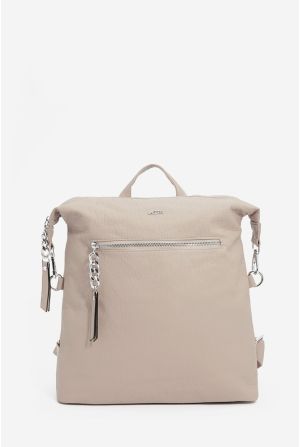 תיק שק עם לוק מטריף המשלב שני סוגי חומרים, יוטה בחלקו התחתון וחומר דמוי עור משופשף בחלקו העליון.